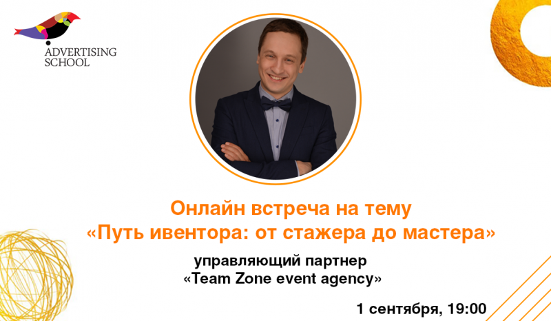 1 сентябряAdvertising School приглашает на бесплатную онлайн-встречу от управляющего партнера Team Zone event agency– Дмитрия Богачкова.