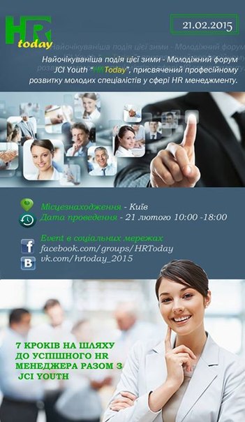 Самое ожидаемое событие этой зимы - Молодежный форум JCI Youth "HRToday", посвященный профессиональному развитию молодых специалистов в сфере HR менеджмента. Основной целью мероприятия является предоставление теоретических знаний и практических навыков в данной сфере. Мероприятие проводится при поддержке самых успешных менеджеров в сфере HR, которые поделятся своим опытом и профессиональными умениями.