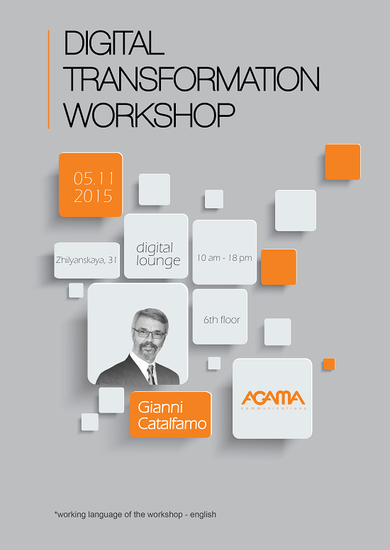 Программа интерактивного воркшопа для владельцев и СЕО «Трансформации управления бизнесом в цифровую эпоху» от Джанни Каталфамо - эксперта мирового уровня в цифровых коммуникациях: