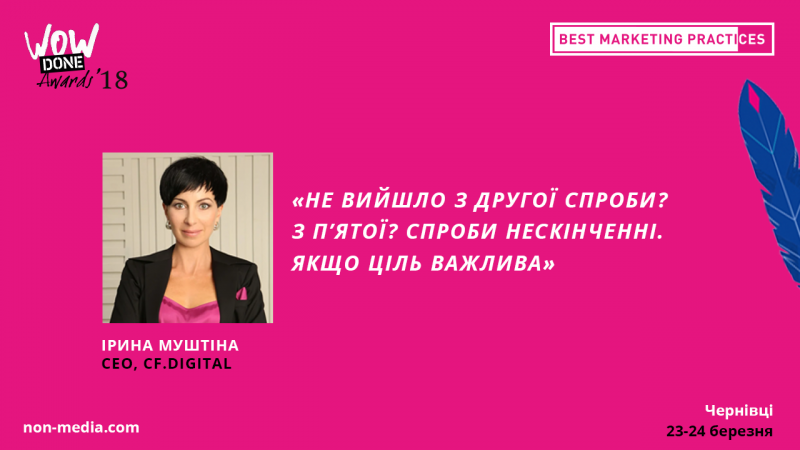 24 березня на конференції Best Marketing Practices Ірина Муштіна, СЕО, CF Digital, поділиться відповіддю на питання «Навіщо тобі SHUBA?» І детально розповість про секрети якісної та ефективної реалізації свого проекту.