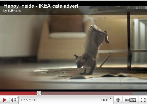 За ней следует реклама магазина IKEA, в которой десятки кошек уютно располагаются на магазинных диванах и коврах.
