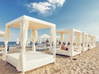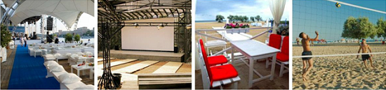 белоснежным шатром, оборудованном профессиональным звуком, сценой и экранами в непосредственной близости от моря!