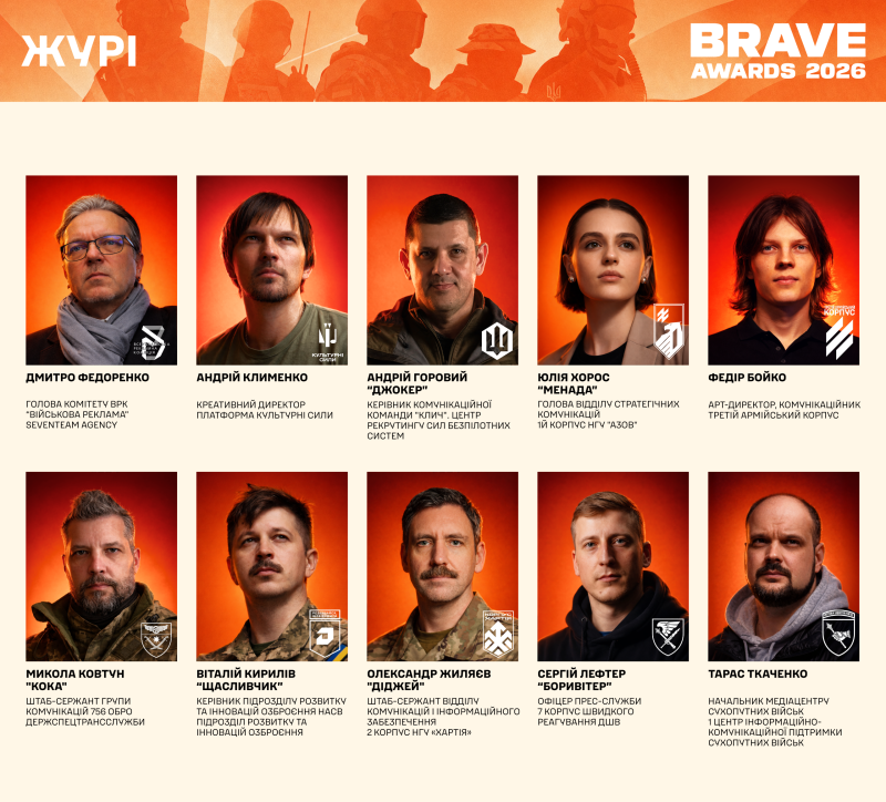 Організатори Brave Awards представили склад журі першого в Україні конкурсу військової реклами, який проходить у межах Ukrainian Creative Stories 2026.