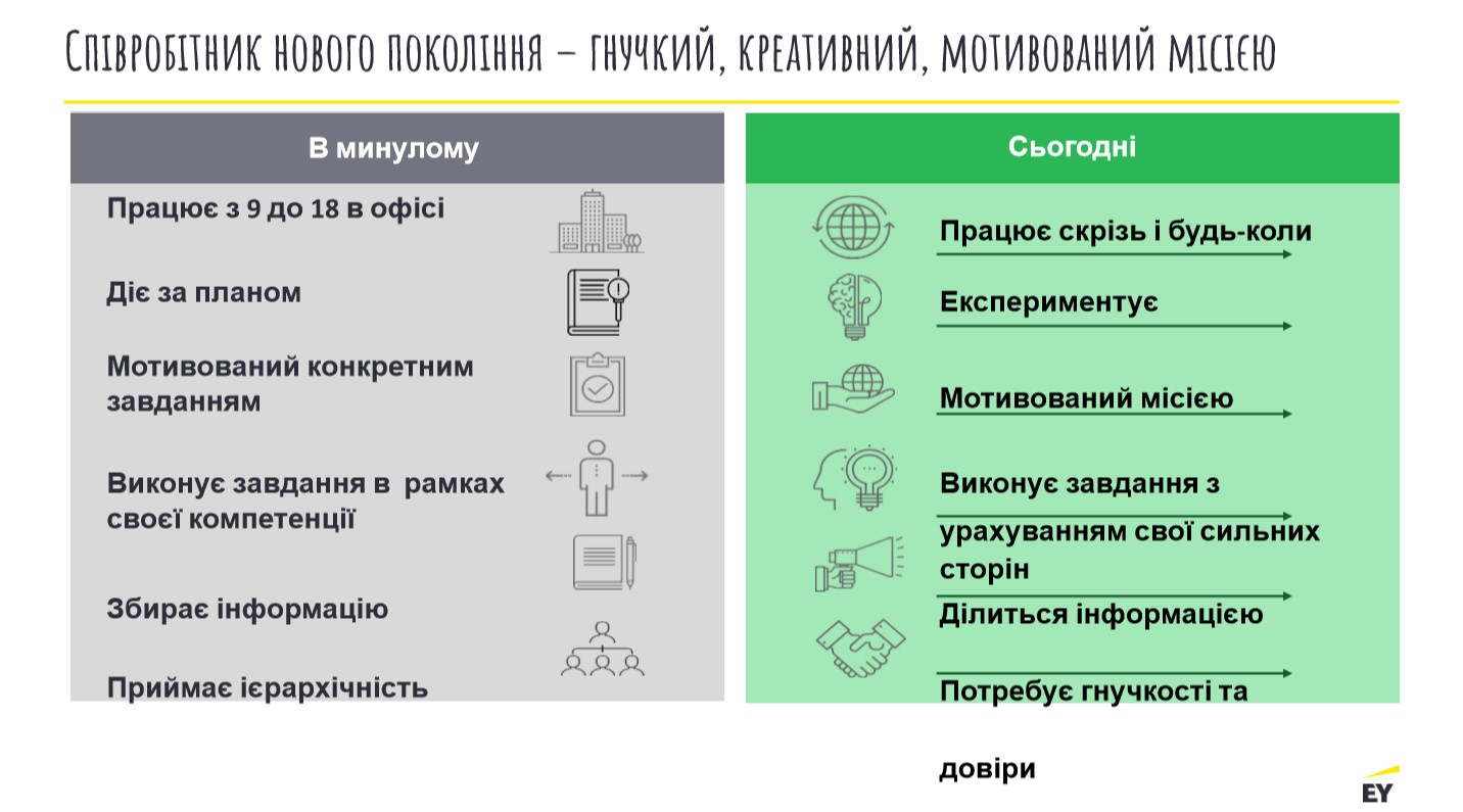 Катерина як незалежна HRM менторка та експертка з 11-річним досвідом докладно зупинилась на проблемі лідерства. Це поняття більше не стосуються лише керівників. Кожен фахівець в певних робочих процесах є лідером. Проте лише 22% лідерів володіють потрібними компетенціями, лише у 46% компаній працівники чітко розуміють мету бізнесу. Третина компаній не має жодної програми розвитку лідерства, а з наявних програм — 86% неефективні. Тож спікерка розповіла, як це виправити, та наочно показала, яким має бути фахівець нового покоління.
