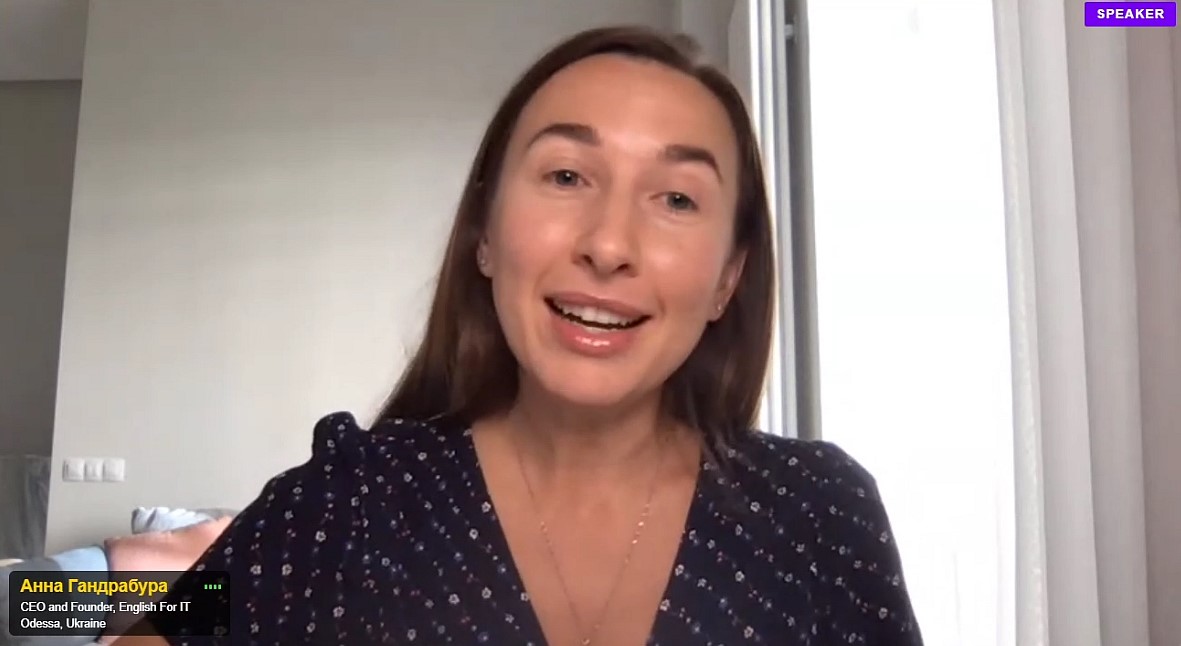 опитуванням, яке організатори провели перед самітом, третина IT та Digital-фахівців жваво цікавиться тим, як підвищити рівень профільної англійської та як нею доречно користуватись на співбесідах. Саме про це і розповіла Анна у своїй доповіді. «English для IT-спеціалістів — це вже не Soft Skills, це — обов'язкова вимога. Навіть Hard Skills» — підкреслила Анна. У доповіді вона розповіла, що бути «непомітним співробітником» через страх показати незнання мови — це вкрай небезпечно для кар'єри. «Пам'ятайте: ваші помилки турбують лише вас» — заспокоїла вона тих, хто боїться поставити не той артикль або не знає Perfect Tense.