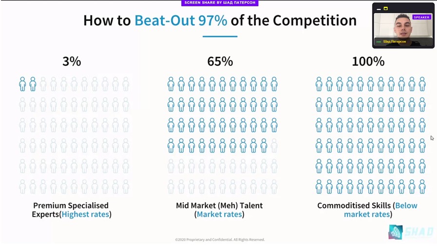Розпочав захід співзасновник та СЕО "Make it in Ukraine" — стартапу, який синхронізує підприємців і менеджерів з усього світу з талановитими професіоналами України. Його влучна англомовна доповідь розкрила 5 ключових кроків концепції Perceived Value (усвідомленої цінності). Спікер докладно розібрав, як заробляти в 5 разів більше, працюючи віддалено. Для цього потрібно 5 кроків: