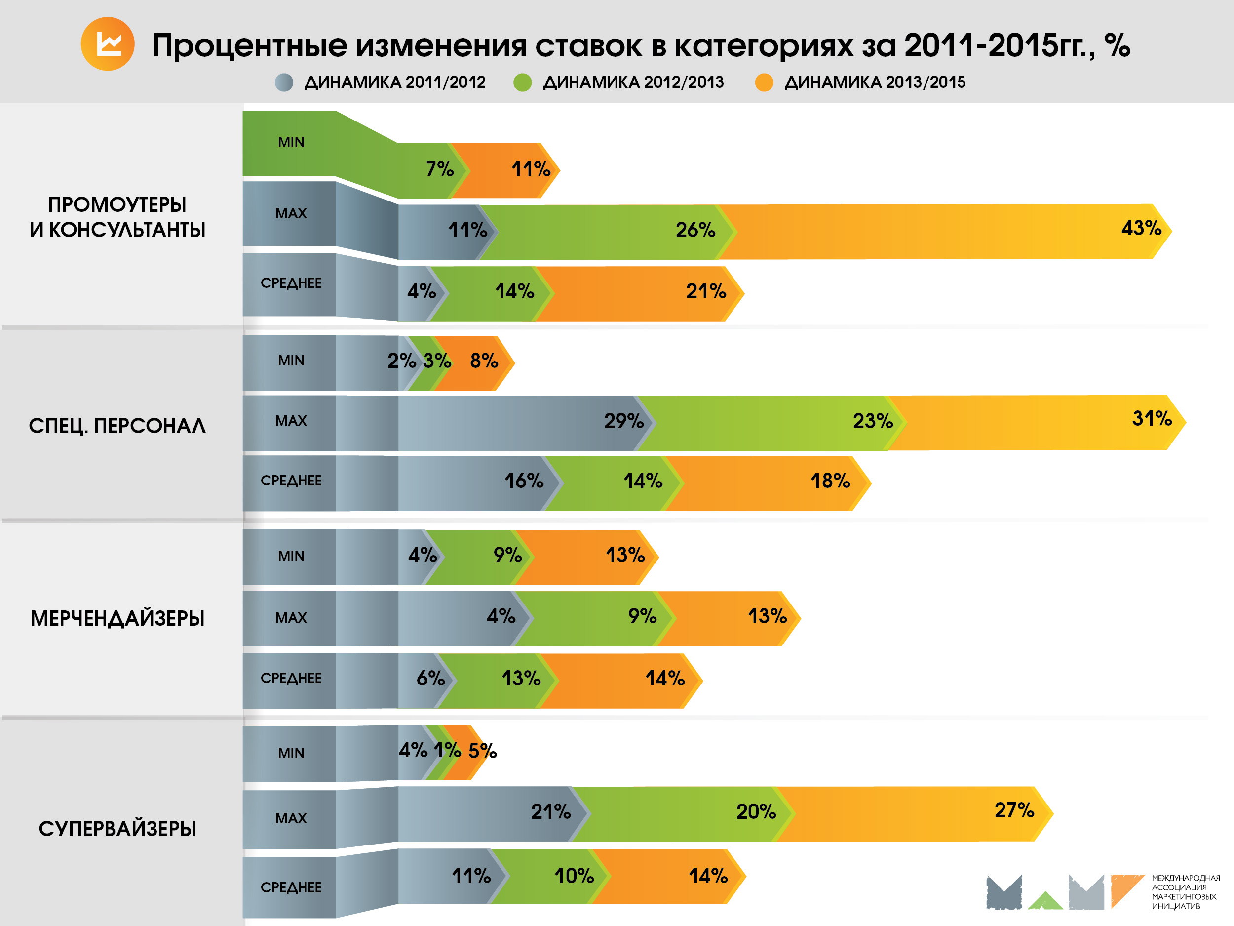 Ценовые исследования средних базовых ставок различных категорий промо-персонала проводятся МАМИ с 2011 года. Это безусловно важная инициатива, которая помогает установить единые правила игры, сделать рыночные условия прозрачными для всех игроков. Понятные и открытые ценовые ориентиры препятствуют демпингу и позволяют точнее планировать кампании как клиентам, так и агентствам.