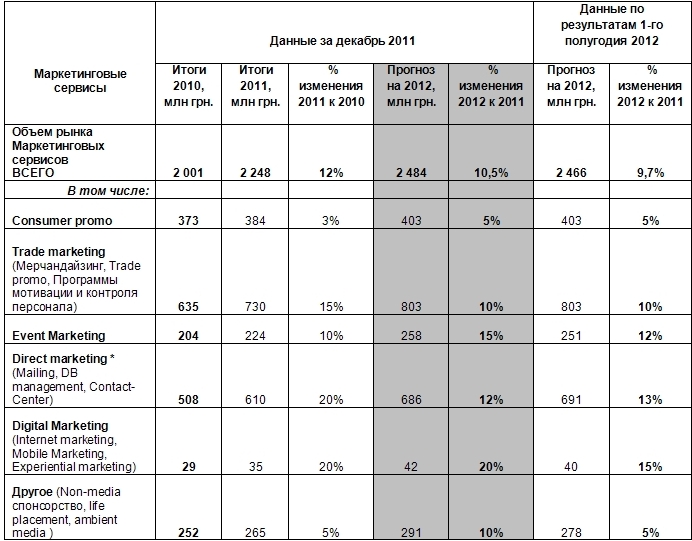 Оценка объема рынка маркетинговых сервисов. Прогноз на 2012 год