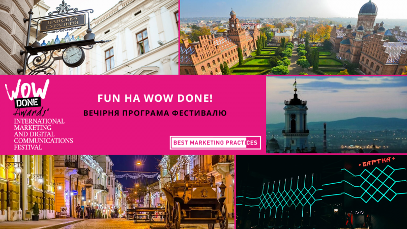 Оргкомітет фестивалю WOW DONE AWARDS 2018 оголошує дводенну насичену фестивальну програму, серед якої, окрім конференції Best Marketing Practices та Церемонії нагородження переможців, насичена вечірня розважальна програма в Чернівцях 23-24 березня. Акредитація відкрита до 16 березня.