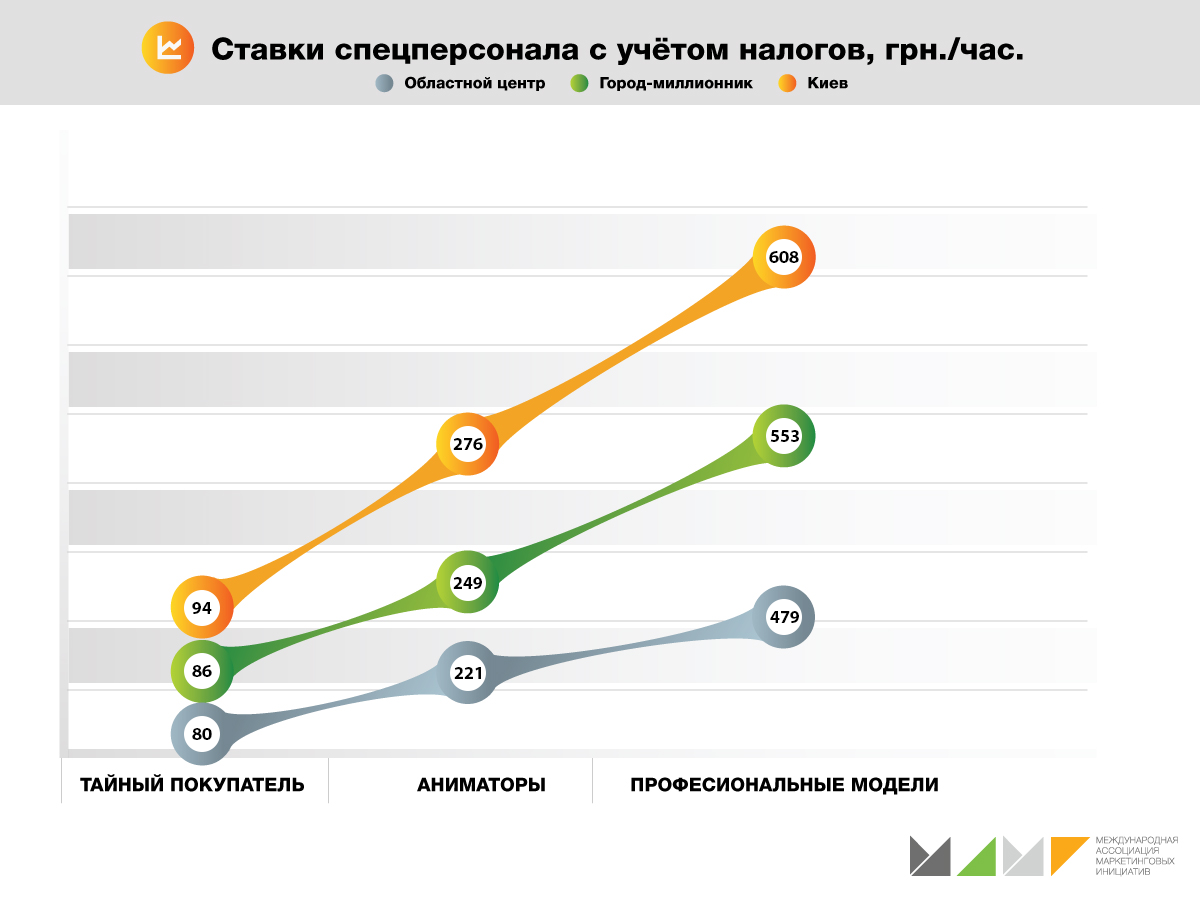 Работа в выходные и праздничные дни идет с коэффициентом 1,5-2, в такие дни поток больше, а значит, и промо эффективнее. Как и прежде, компания должна заплатить около 50% налогов, чтобы рассчитаться с персоналом: например, чтобы выплатить 100 грн., компания начисляет чуть больше 150 грн. Все зарплаты в статье указаны с учетом налогов.