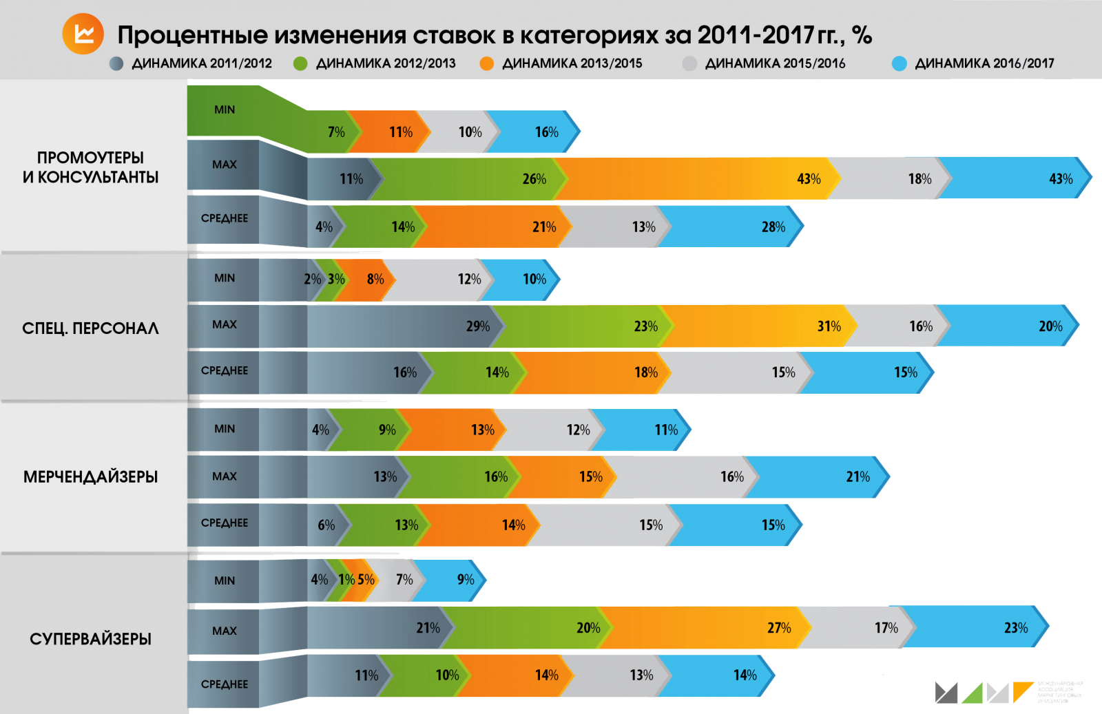 Перед «весенним обострением» промо-активности и с учетом позитивных перспектив МАМИ презентует VI волну исследований ставок промо-персонала. Прозрачный подход к ценообразованию совместно с подписанным меморандумом о справедливом сотрудничестве - это реальные инструменты изменения к лучшему ситуации на рынке маркетинговых услуг.