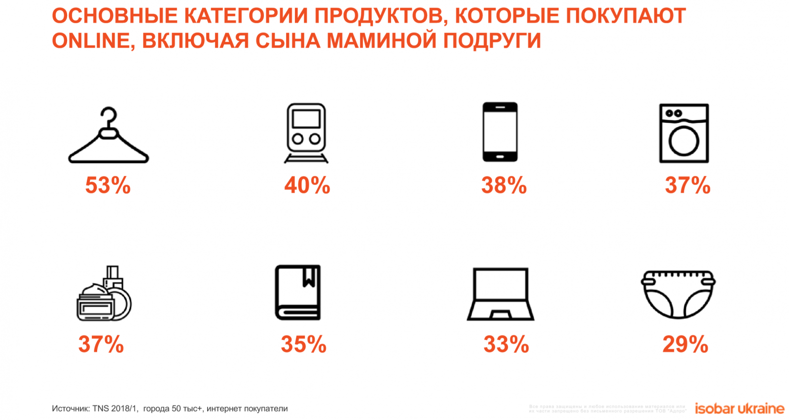 8. Только 34% городского населения Украины совершает онлайн покупки.