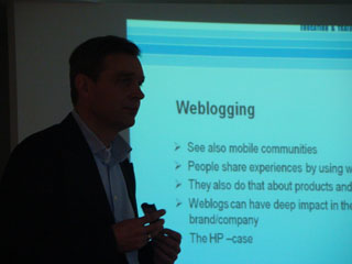 «Технологии Web 2.0, вторая жизнь (second life), вирусный маркетинг (viral marketing), подкасты (podcasts), гео-блоггинг (GEO-blogging), водкасты (vodcasts), блоги (webbloggs), блюкасты (bluecasts), внутри игровая реклама (ingame advertising), крауд сорсинг (crowd sourcing), маркетинг слухов (buzz marketing), маркетинг сплетен (word of mouth marketing), мобильные комьюнити (mobile community), g-коммерция (g-commerce), search engine optimization (оптмизация поиска информации), radio frequency identification (радиочастотная идентификация), really simple syndication - RSS (действительно простое синдицирование) и т.д. - подумайте, что это значит для Вас и Ваших компаний, как Вы можете это использовать, будьте креативными, не думайте, что это не сработает в Украине, все зависит только от способа преподнесения и реализации через каналы коммуникации.» - так начал свою речь Якоб Столкер, координатор программ NIMA в Центральной и Восточной Европе.
