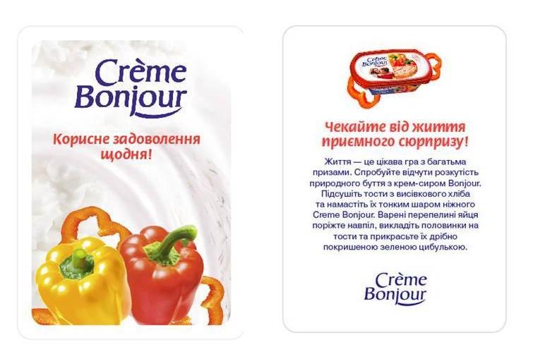В ходе кампании команда агентства SKAZKA поставила акцент на одном из противоречивых качеств человека – любопытстве. В залах супермаркетов были размещены промоутеры, которые в игровой форме привлекали посетителей, предлагая им «карточки предсказаний». На карточках было изложено «пророчество» на следующий день и рекомендация о том, как сделать этот день вкуснее вместе с Crème Bonjour. Также покупатель получал комплексную консультацию по продукту и небольшие рецепты блюд с использованием Crème Bonjour.