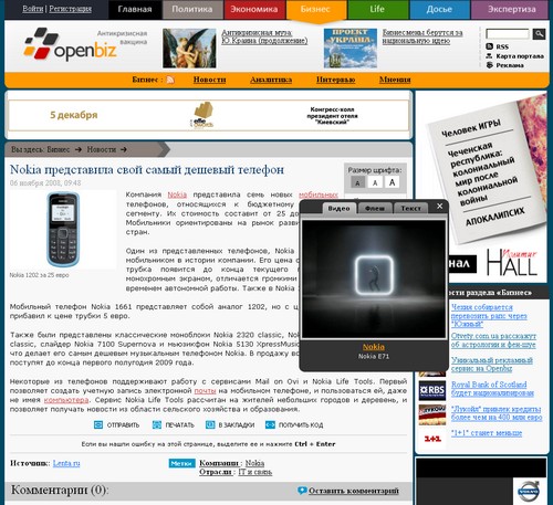 Впрочем, размещением одних только видеороликов разработчик сервиса, компания Infodigitech, не ограничилась. Рекламодатель может использовать в качестве рекламного носителя стандартный баннер, флеш или текстовое сообщение, и в таких случаях реклама будет эффективной, ведь носитель располагается в  теле текста читаемом посетителем сайта, а не за его пределами.