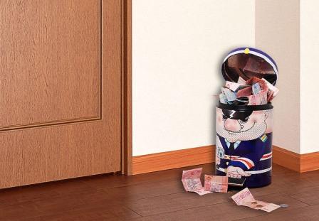 Объект многофункционален: его можно использовать как для сбора мусора, так и для накопления средств на штрафы (в том числе автомобильные). Веселый клееный парень с кокардой – большой специалист по финансам, улыбаясь во весь рот, буквально цитирует классиков: «Дядя, ДАИ миллион?». Как реагировать на эту просьбу – каждый решает сам.