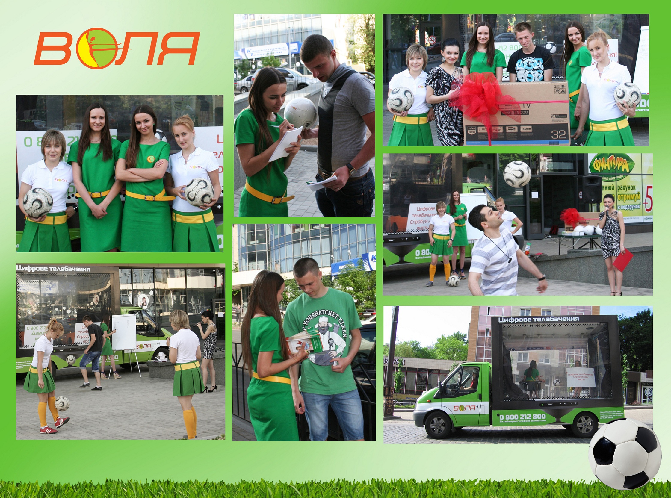 Два украинских города стали участниками футбольного конкурса, организованного командой Euro RSCG 4D, приуроченного запуску нашей новой услуги – цифрового телевидения наивысшего качества. Это имиджевые мероприятия, нацеленные на повышение лояльности, узнаваемости, привлечение внимания, а также анонсирующие акционное предложение от компании «ВОЛЯ». Совсем скоро интерактив пройдет в других уголках нашей страны. Мы уверены, что, благодаря эффективной работе Euro RSCG 4D, удовольствие от конкурсов будет таким же огромным, как и наслаждение от просмотра всевозможных телевизионных программ в отличном качестве HDTV от компании «ВОЛЯ».