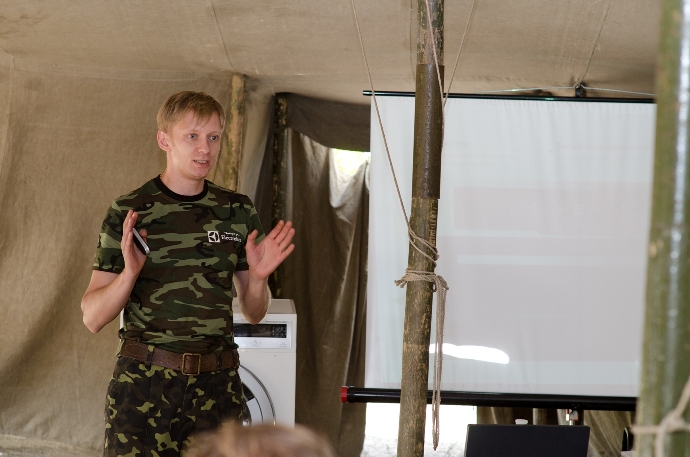 Первым этапом обучения в Академии стала электронная программа, позволившая отобрать тридцать лучших продавцов из каждого региона проекта (Киев, Одесса, Донецк, Харьков, Днепропетровск). Дальше продавцов ждали не только продуктовые тренинги, но и настоящие испытания – пейнтбол и стрелковый клуб. После сурового отбора, уже практически солдаты Electrolux отправились проходить самый приятный и в тоже время непростой этап. В Ивано-Франковске пятнадцать финалистов программы ожидала экскурсия по заводу Electrolux и «последняя баррикада» – специальный квест от Full Contact. Тематические задания на знание продукции, военный антураж, полевые условия, палатки, стрельба, полосы препятствий – только самые стойкие и лояльные прошли квест до конца и получили главный приз – поездку на производство Electrolux в Венгрию.