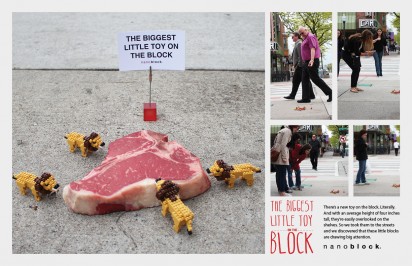 Для рекламы микроконструктора Nanoblock креативщики из Team Detroit, США провели ambient кампанию. Так как из-за маленького размера кирпичики Nanoblock сложно заметить на полке, креативщики решили обратить внимание на игру, разместив фигурки из микроблоков на улице.