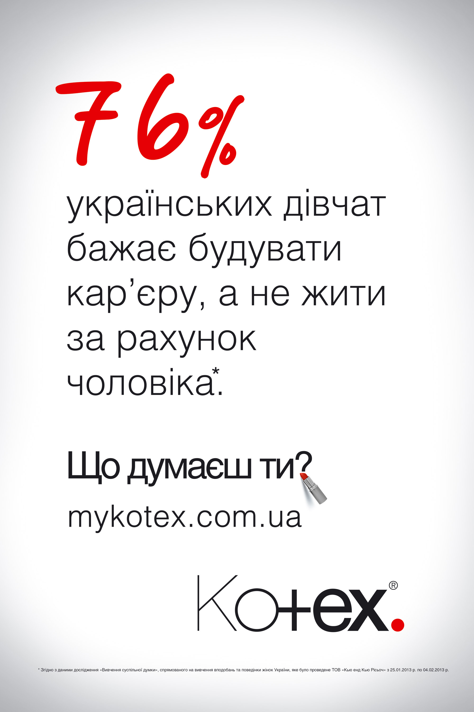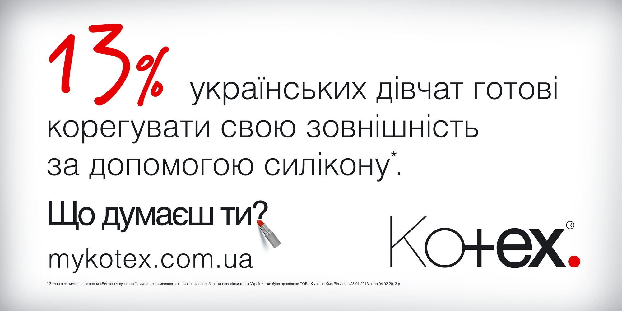 Коммуникация продолжилась в интернете. Социальные сети, сайт http://mykotex.com.ua/ предложили девушкам сделать свой выбор, ответить на предложенные вопросы и поделиться своим мнением. Полученные ответы легли в основу второго этапа рекламной кампании. ТВ, наружная и нестандартная реклама рассказали, что же выбирают украинские девушки.