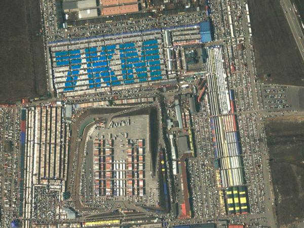 Речь идет о самой большой в мире рекламе на крышах — это надпись «7 км» на контейнерном комплексе, передает корреспондент агентства «Вiкна-Одеса».
