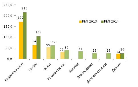 Журнал «Forbes Украина» по итогам исследования PMI 2014 (Киев), занял лидирующую позицию среди всех ежемесячных изданий.