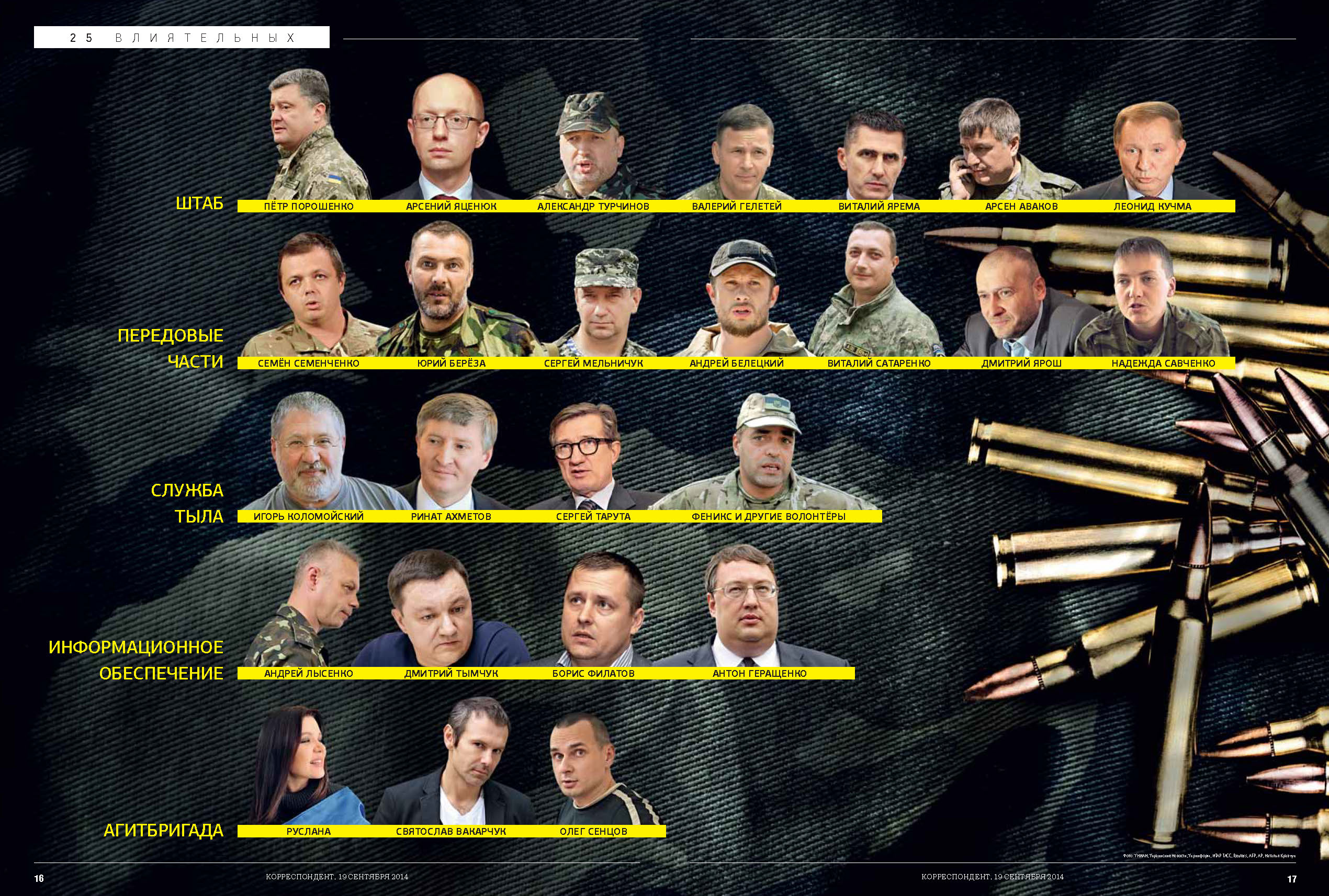 Лица с передовой: Семён Семенченко, Юрий Береза, Сергей Мельничук, Андрей Белецкий, Виталий Сатаренко, Дмитрий Ярош, Надежда Савченко