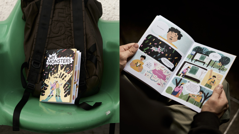 “Метою коміксу було створити історію, яка одночасно навчала б і розважала. Ми обрали формат щоденника, у якому розповідається про емоційні виклики Мії у спілкуванні з однолітками. Щоб зробити тему доступнішою, ми створили метафору у вигляді вигаданих монстрів, які уособлюють переживання дитини в неінклюзивному середовищі”, — розповідає Тоня Кондакова, партнерка та креативна директорка BRND WGN.