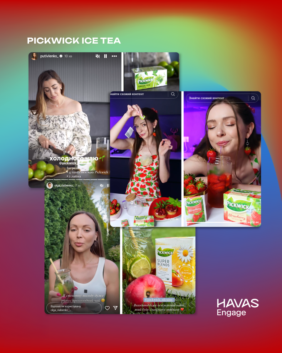 • Водночас у Pickwick Ice Tea ми зробили ставку на естетику та натхнення. Блогери не просто інтегрували продукт у контент, а створили атмосферні рецепти, які легко відтворити вдома. Вони показали, як просто та красиво можна експериментувати зі смаками, що відразу викликає бажання спробувати. (фото 4)