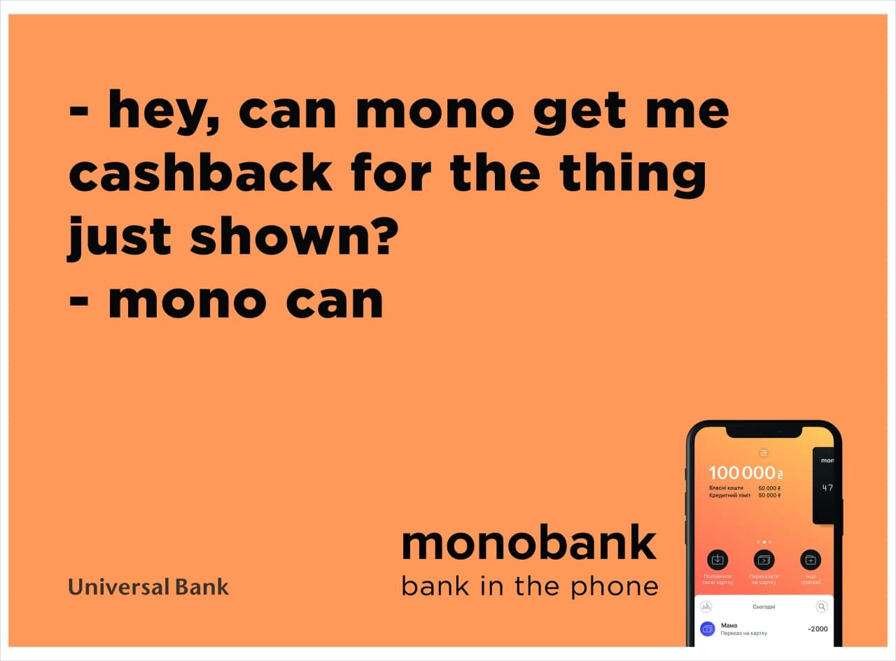Ідея Initiative була в тому, щоб поєднати рекламу інших брендів з рекламою monobank. Вони помітили, що категорії FMCG та побутова техніка, які найбільш популярні для кредитування та отримання кешбеку, займають великий клаттер на ТБ. Домовилися з телеканалами та прив’язали спеціально створені ролики одразу після цих категорій. Таким чином, чужа реклама теж почала працювати на mono за рахунок роликів-причеп.