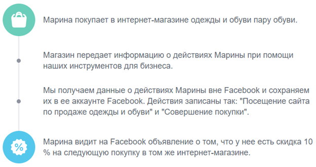 как информация о действиях передается в Facebook: