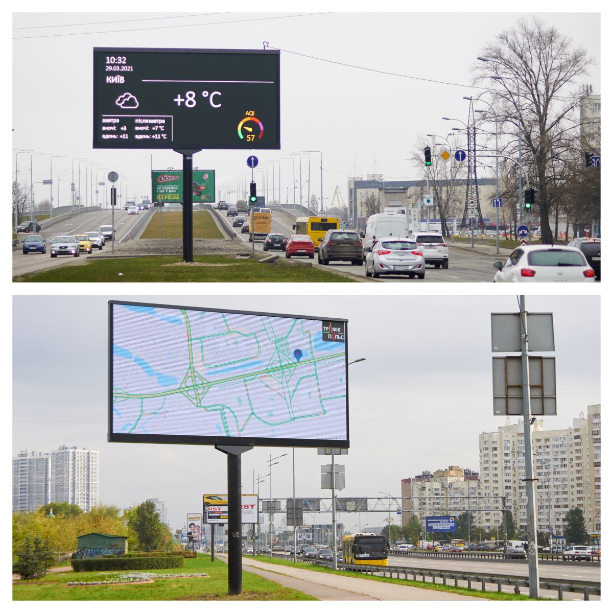В Україні таке вже відбувається. Наприклад, оператор зовнішньої реклами «РТМ-Україна» чергує повідомлення брендів з оперативною інформацією місцевого значення: дорожня тиснява, якість повітря (AQI), прогноз погоди на найближчі кілька годин.