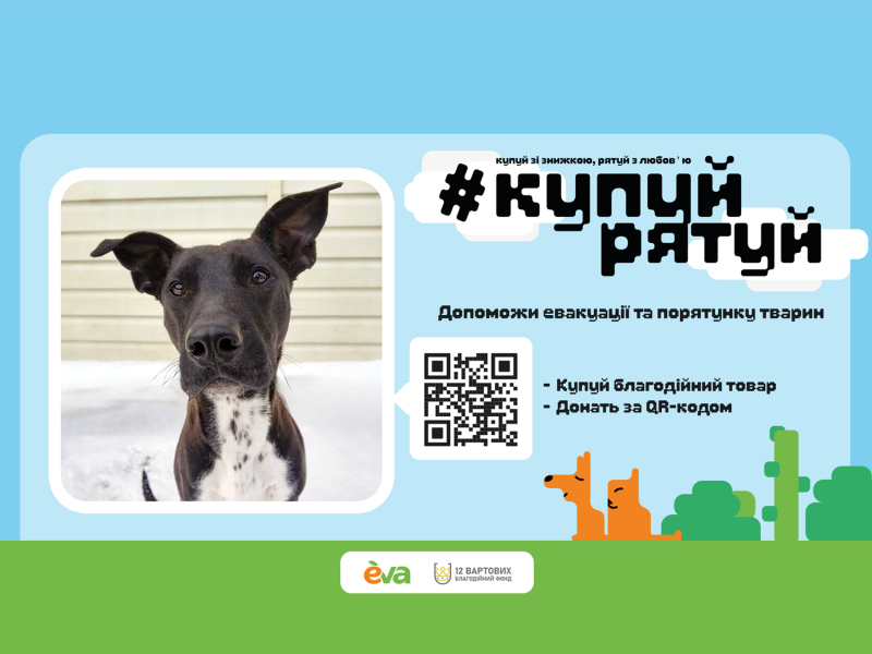 Спільний проєкт мережі EVA та фонду «12 Вартових» під назвою «Купуй – рятуй» дає можливість кожному українцю профінансувати черговий евакуаційний рейс для порятунку хвостиків із гарячих точок.