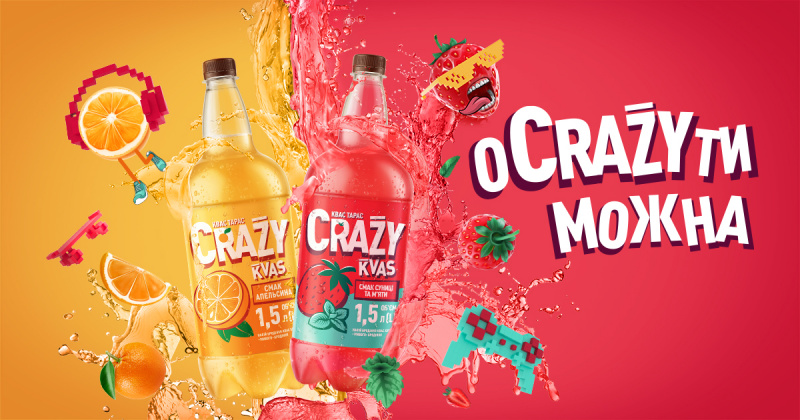 «Crazy Kvas вкус земляники и мяты» - идеальный вариант для семейного праздника, просмотра любимого фильма, вечеринок в Zoom и для длинных пеших прогулок по парку.