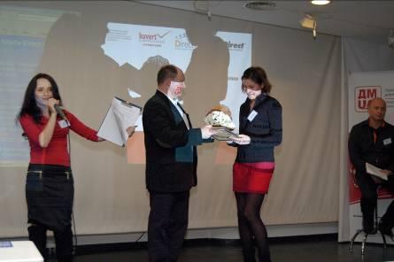В завершение вечера Юлия Павленко (УАДМ) провела награждение победителей конкурса почтовых конвертов "Жемчужина почтовой рассылки". Поздравлять можно «Украинскую финансовую группу», «OTP Bank», «Клуб семейного досуга» и «Фокстрот» за смелые и эффективные решения.