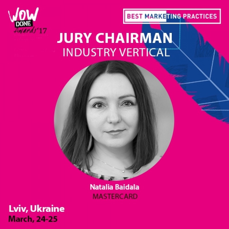 Склад журі Індустріальної вертикалі міжнародного фестивалю маркетингових і digital комунікацій WOW DONE AWARDS 2017 буде працювати під керівництвом Наталії Байдали, директора з маркетингу Mastercard Europe SA в Україні, Молдові, Грузії та країнах Центральної Азії.