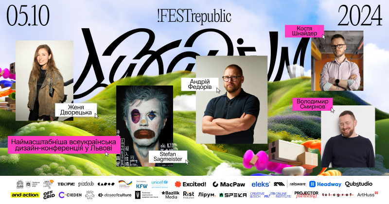 На конференції виступатимуть ключові лідери у сфері дизайну, маркетингу та креативних індустрій. Серед спікерів — Андрій Федорів, засновник і CEOFedorivGroup, один із провідних маркетологів України, Паша Вржещ, співзасновник і креативний директор BandaAgency, Наталія Фільварова, лідерка UXRв Google, Володимир Смирнов, дизайн-директор SpiilkaDesignBüro, Дмитро Растворцев, український шрифтовий дизайнер,Костя Шнайдер, креативний директор PublicisGroupeUkraine& CzechRepublic+ Saatchi& SaatchiUkraine, а також Стефан Заґмайстер, один із найвпливовіших графічних дизайнерів світу, який виступить наживо у Львові.