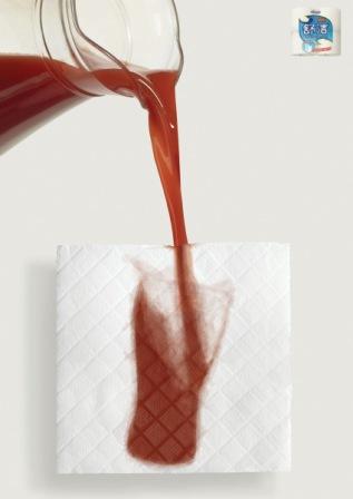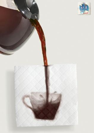 Китайское отделение JWT использовало интереснейшую идею, которая представляет салфетки как бесформенную посуду.