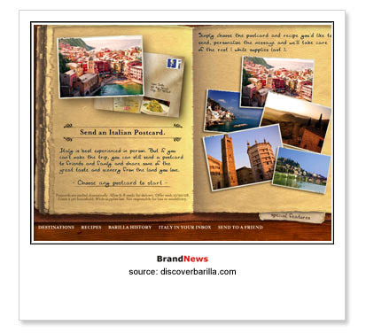 Barilla предложила потребителям бесплатный почтовый сервис. Для того, чтобы воспользоваться им, нужно посетить сайт discoverbarilla.com, выбрать открытку с видами Италии (рис.), черкнуть пару строк своим близким и указать адрес отправителя.