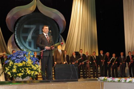 Завод-юбиляр принимал поздравления на самом высоком уровне: со сцены была прочтена телеграмма от Президента Украины, губернатор Харьковской области Арсен Аваков вручил государственные награды и грамоты Облгосадминистрации работникам завода. Юбиляров поздравил Городской голова Михаил Добкин, вручил грамоты и ценные подарки от Городского совета. Протокольная часть вечера прошла классически стройно и красиво. Для постановки шоу был приглашен прославленный харьковский режиссер, заслуженный деятель искусств Феликс Чемеровский.