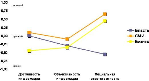 График 1. Индекс уровня прозрачности органов власти, СМИ и крупного бизнеса