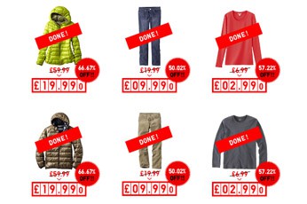 Вместо того чтобы дожидаться скидок, японская марка Uniqlo предлагает покупателям самим снижать цены на своем сайте. Чем больше людей изъявит желание купить определенную вещь, тем быстрее и больше снизится ее цена. Так на странице Uniqlo Lucky Counter можно увидеть как дутая куртка, стоившая £59, 99, ушла за £19, 99 - процент скидки составил 66, 67%. А джинсы за £19, 99 были проданы за £9, 99, то есть со скидкой 50, 02%.