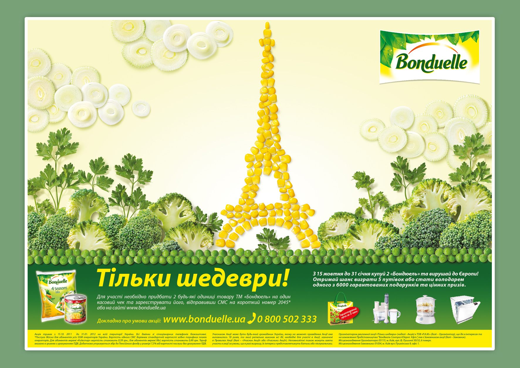 Промо кампания «Только шедевры!» от Bonduelle проходила на территории Украины. Изображения были использованы на всех промо-материалах: ТВ-роликах, плакатах, постерах, POSM, и размещались в супермаркетах, магазинах и метро. Данная кампания была широко популяризирована в СМИ. Кейс «Шедевры Bonduelle» принимал участие в международных  конкурсах. Мы можем с уверенность говорить, что идею и вижуалы, созданные нашим агентством, нельзя было не заметить.