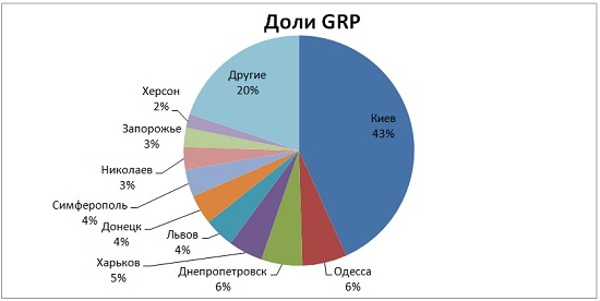 *Doors Consulting, просчет сделан на основании 30 измеряемых городов с генеральной совокупностью 13.572М человек в возрасте 18+, это почти 90% всего населения Украины 18+ в городах 50К+ (данные CCS 2013). Рейтинг рекламной плоскости (RP) — это процентное отношение величины эффективной аудитории рекламной плоскости ко всей аудитории города. Суммарный рейтинг всех плоскостей адресной программы - уровень рекламного воздействия (GRP Gross Rating Point). Полученные данные репрезентативны для всей Украины. Предположительно вся география с учетом 50К+ городов будет иметь суммарное значение рейтингов на 5% выше.