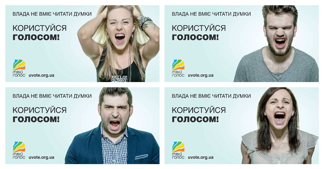 При поддержке Фонда «Образовательные инициативы», Биржи социальной рекламы и креативного агентства «Cheil Украина» стартовала социальная рекламная кампания молодежной инициативы «Твій Голос» - «Користуйся голосом!». Главная задача кампании - мотивировать молодежь пользоваться своим голосом как во время выборов, так и после них. Реклама призывает молодых людей в возрасте 18-29 лет задуматься над тем, что именно их голос решает будущее.