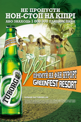 Чтобы выиграть незабываемый отдых, нужно принять участие в новой промо-кампании пива Tuborg и стать одним из 30-ти ее победителей. Каждый победитель акции получит в подарок путевку на двоих на GreenFest Resort на неделю! Для участия в промо необходимо приобрести пиво Tuborg в акционной упаковке, найти уникальный промо-код, зарегистрировать его на сайте tuborg.ua.