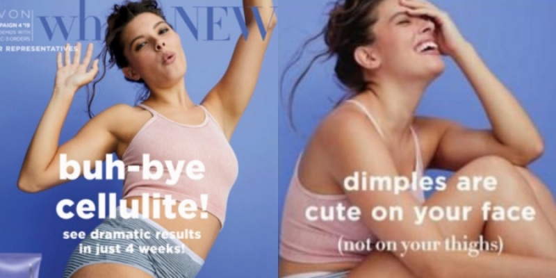 Ранее в каталоге компании появилась реклама антицеллюлитного крема Avon, одним из слоганом которой стало утверждение «Ямочки хороши на твоем лице, но не на твоих бедрах». Косметический бренд сразу же обвинили в культивировании у женщин комплексов, представляя целлюлит как дефект, а не обычное для большинства представительниц прекрасного пола явление.