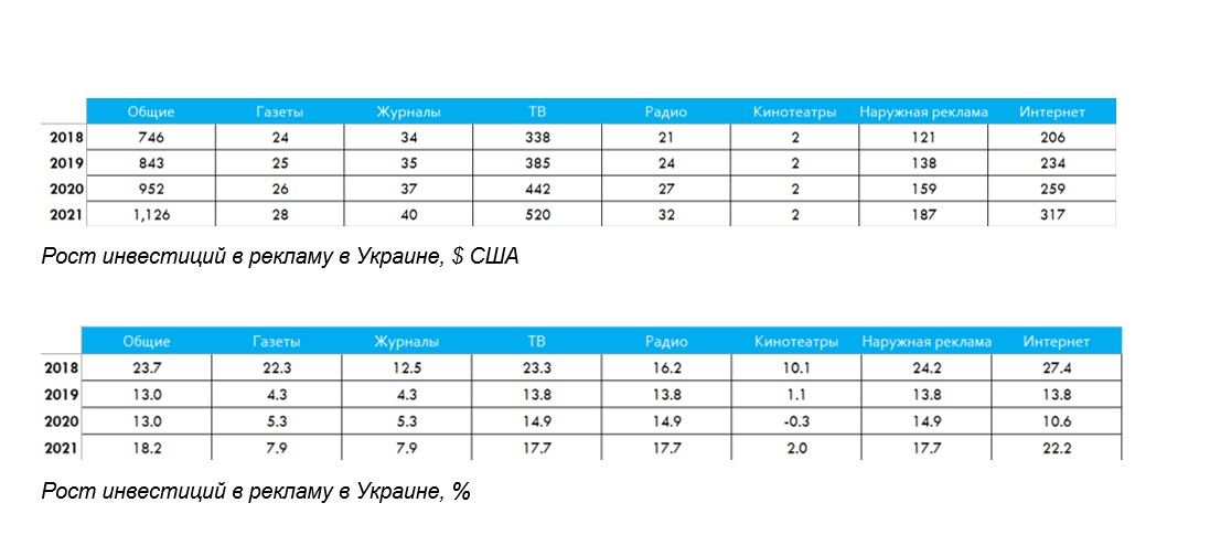 «В Украине интернет-реклама уже несколько лет подряд превышает темпы роста всего рекламного рынка, и тем самым отображает, что наш рынок следует за глобальными трендами. За последние 5 лет интернет-реклама в медиамиксе почти удвоила свою долю и уже приближается к 30%. Дальнейшее стремительное развитие мобильного интернета, рост вовлеченности аудитории в онлайн контент однозначно приводит к усилению роста интернет-рекламы». - добавила Марина Григоренко, директор Zenith Ukraine.
