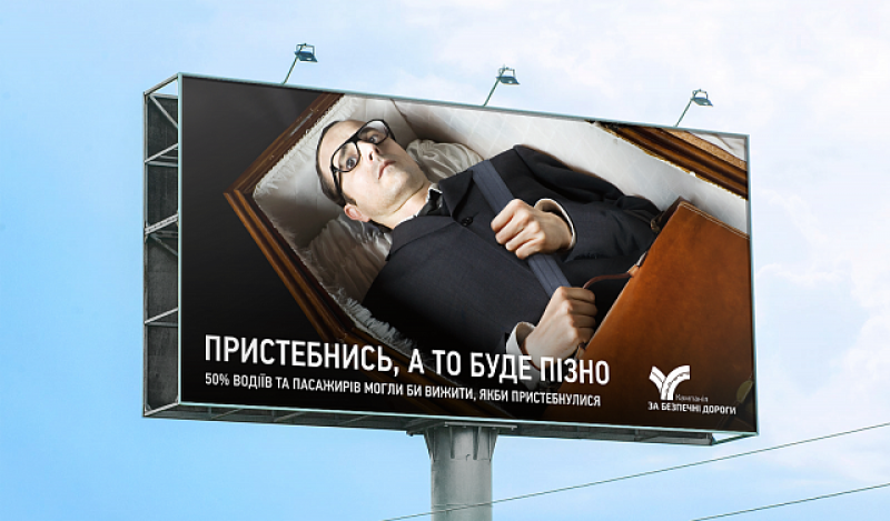 В начале 2019 года в Украине прошла коммуникационная поддержка кампании «За безопасные дороги», направленной на уменьшение смертности и травматизма на дорогах, — в столице и ряде областных центров массово начали появляться креативные билборды с призывом «Пристегнись, иначе будет поздно». Инициатором проекта выступил