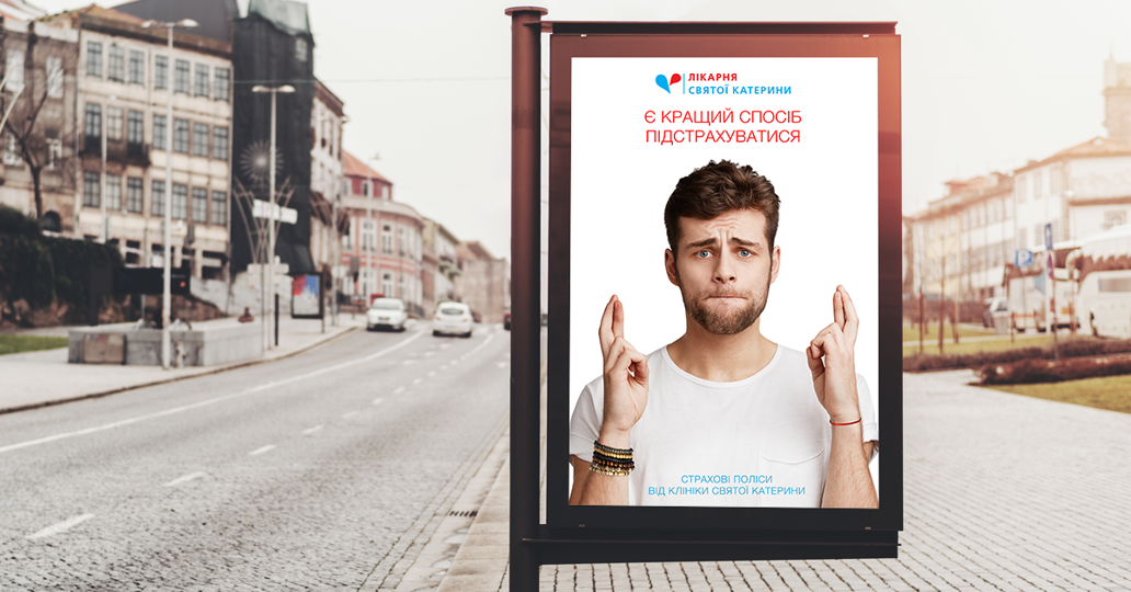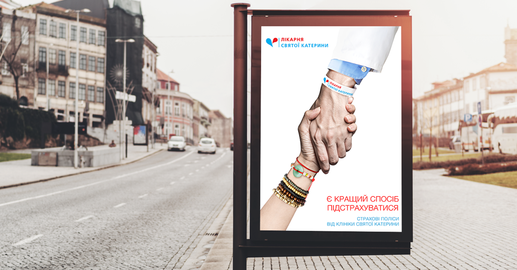 Другий віжуал розповідає історію про допомогу та неминучість. Рука лікаря, що простягається з верху макета до його низу, ніби натякає на ту “вищу силу”, що завжди прийде на допомогу та захистить в обличчі страхових полісів клініки Святої Катерини.